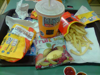 I have been longing to take a picture of a complete set meal of McD here but I only remember it at the end of the meal =p so here is the not-so-complete meal...The deli was already in my tummy so it's just the wrapper...and the fruit bag wasn't inclusive, I got it for free because there was some 'instant win' thing going on.